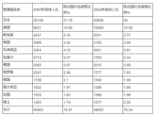 2005年与2004年相比,该市主要客源国中亚洲的游客比例有所增加
